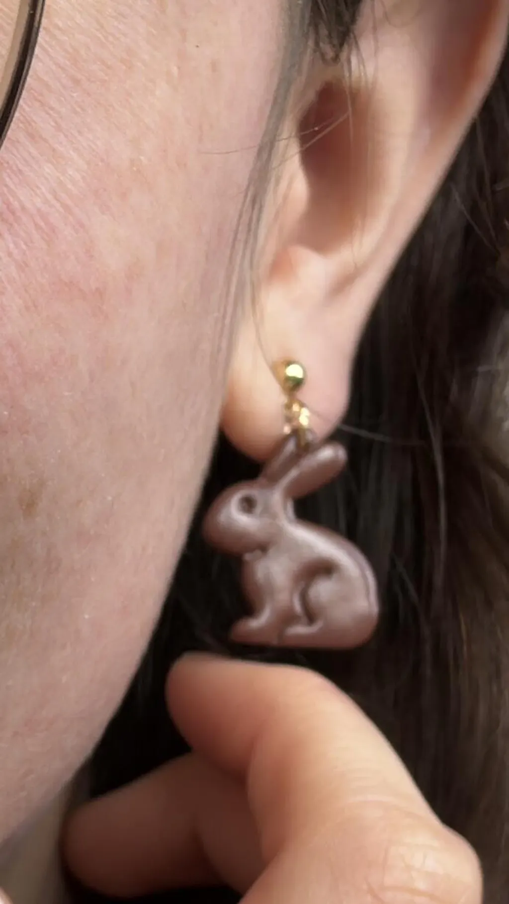 Chocolate Bunny Earrings, Easter Earrings, Gold & Brown